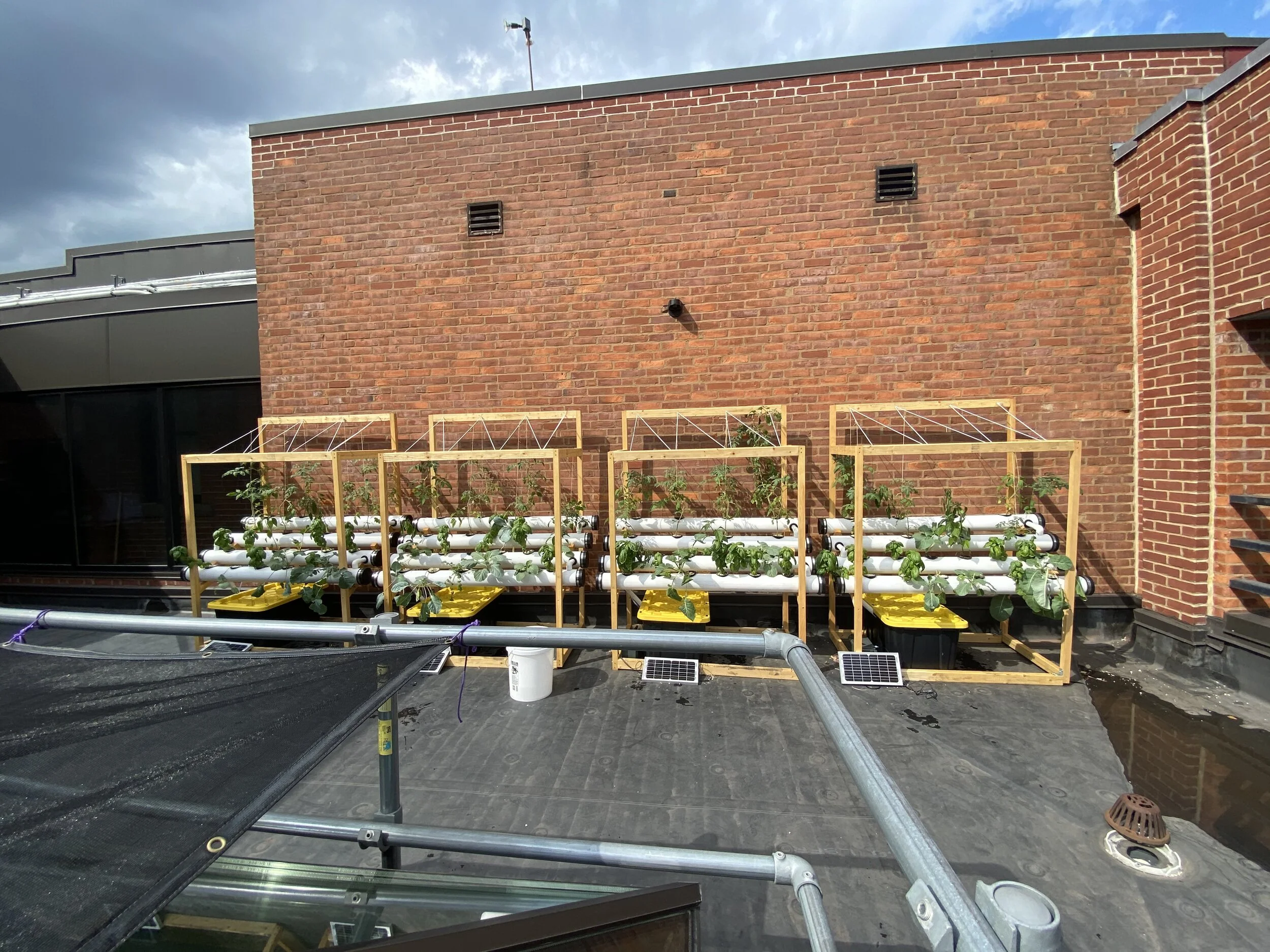 Levo staff brings several hundred gallons of water to start the systems each year to the roof to fill the system. Each week water is added from the bathroom sink on the top floor and from the rain barrels on the roof.